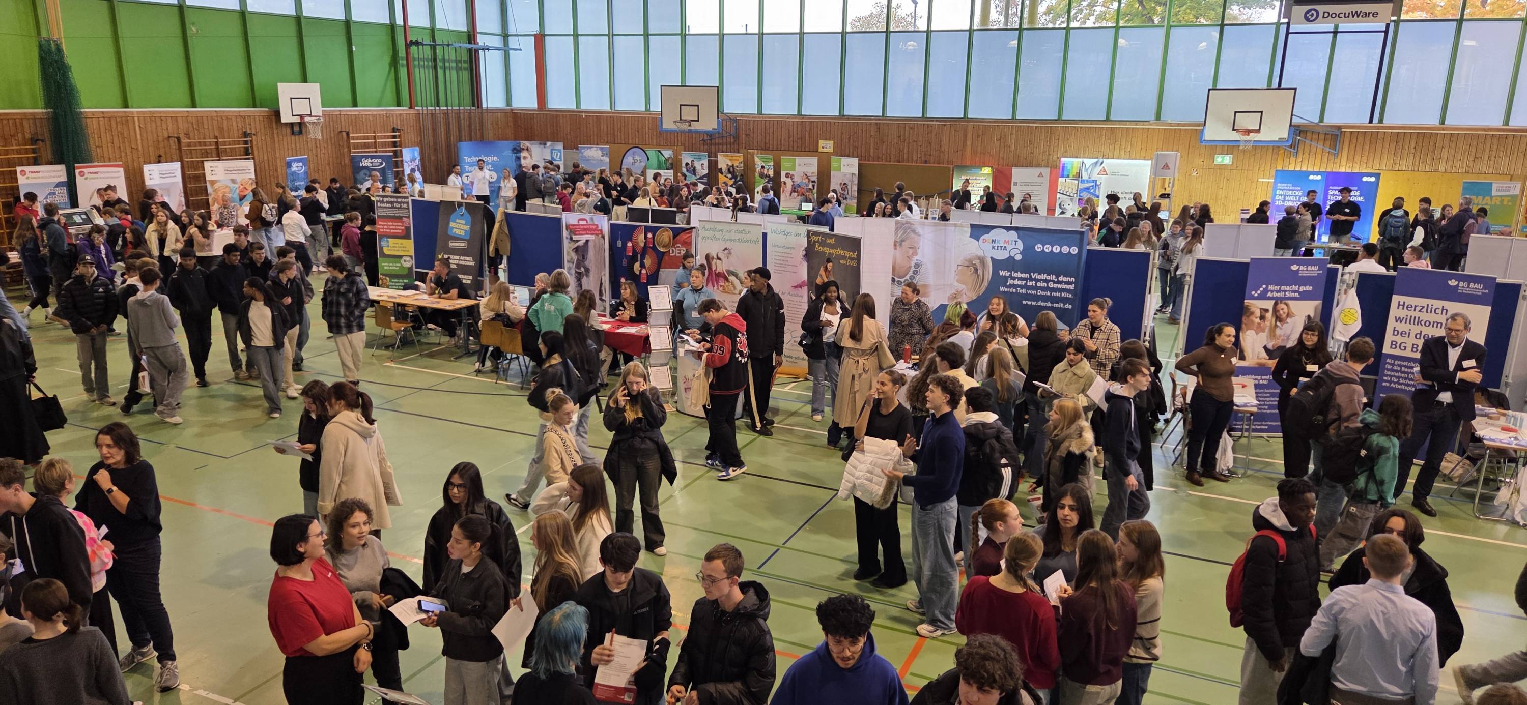Am 16. Oktober 2025 wurde aus dem Campus der Realschule Unterpfaffenhofen und des Carl-Spitzweg-Gymnasiums wieder ein Messegelände: rund 100 Unternehmen bauten Ihre Stände auf, um die Schülerinnen und Schüler der weiterführenden Schulen in Germering über Ausbildungswege und Berufe zu informieren.