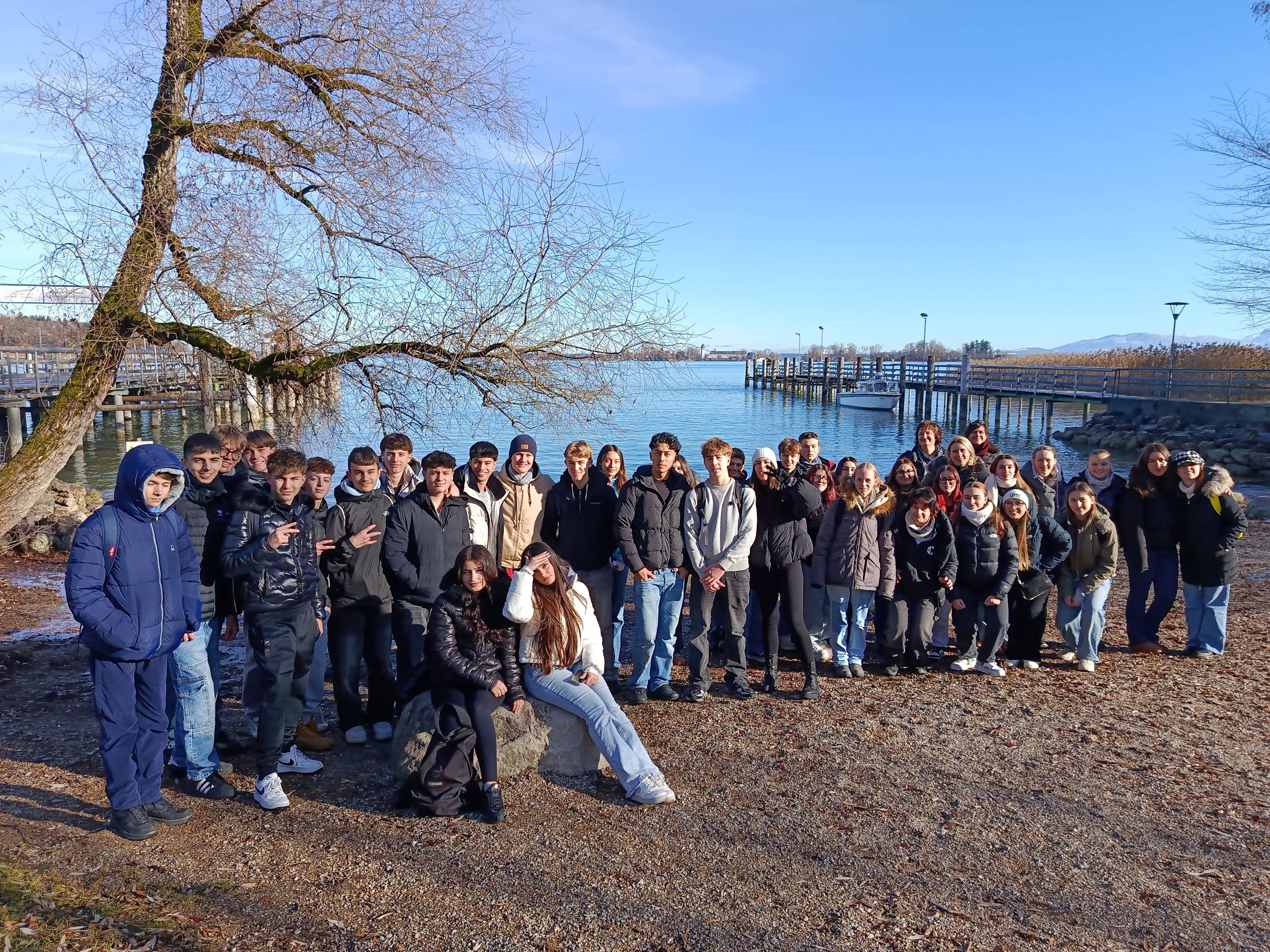 Am Abend des 26.11.2025 versammelten sich 18 aufgeregte deutsche Schülerinnen und Schüler der Jahrgangsstufen 10 und 11 am Bahnhof in Germering, um ihre italienischen Austauschpartnerinnen und -partner in Empfang zu nehmen. Ob das leichte Zittern der Hände dem ungemütlichen Wetter oder doch der großen Aufregung geschuldet war, ließ sich nicht ganz eindeutig sagen. Alle waren gespannt darauf, ihren „corrispondente“ nun endlich zum ersten Mal persönlich kennen zu lernen. Als die S-Bahn dann – wider Erwarten pünktlich – einfuhr, kam es zu einem herzlichen Empfang, bei dem sich alle direkt in den Arm nahmen, als würden sie sich schon lange kennen. Voller Vorfreude ging es anschließend für jede Familie, inklusive italienischem Gast, nach Hause, wo noch zusammen gegessen wurde und die ersten Gespräche in einer fremden Sprache geführt wurden. So begann also die gemeinsame Woche, die sehr von italienischem Flair geprägt war.